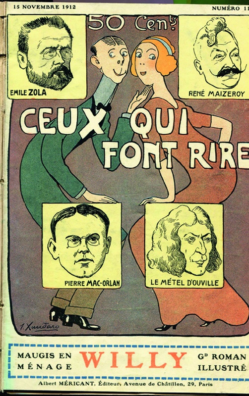 Henry Gauthier-Villars, bekannt unter seinem „Nom de plume“ Willy, war ein französischer Journalist, Musikkritiker, Romancier und ein erfolgreicher Pariser Verleger. Außer mit seinem Pseudonym Willy signierte er mit Henry Maugis, Robert Parville oder Jim Smiley, mit Henry Willy und Boris Zichine … Neben seiner Ehefrau Colette, deren erste Claudine-Romane Willy signierte, – war Curnonsky einer seiner meistgeliebten Ghostwriter. Das gemeinsame Buch mit dem Titel: Chaussettes pour Dames – Damenstrümpfe, signierten sie 1905 mit WC. (Willy-Curnonsky)
